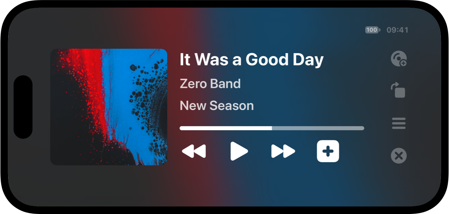 Turn iPhone to a music player with big control buttons and large song artwork on landscape mode. Also support screen always on