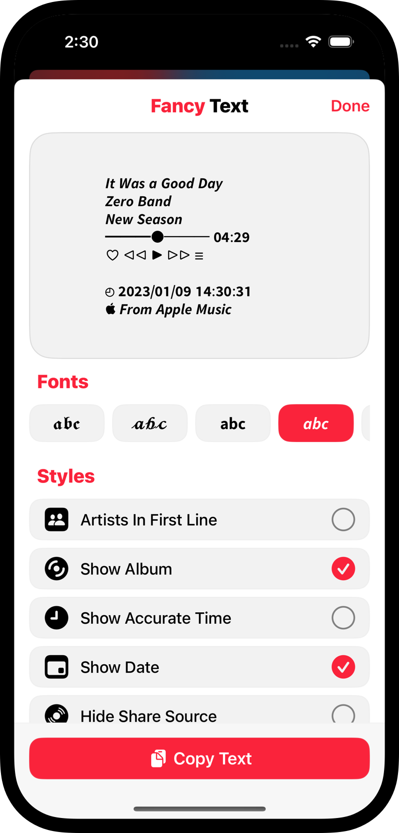 Turn iPhone to a music player with big control buttons and large song artwork on landscape mode. Also support screen always on